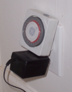 Since both the timer module and the wall transformer are U.L. rated, and we're not really modifying them in any way, I didn't see the need to add any fuses or circuit breakers. I did, however, make sure this is all plugged into a G.F.I. outlet.