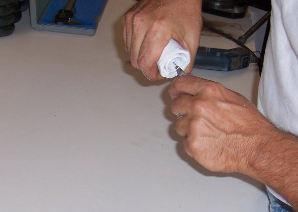 weather cap assembly. I scribed a two lines, then center-punched them to guide the drill. |
