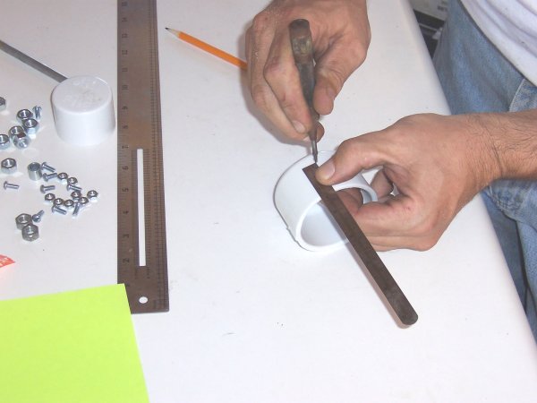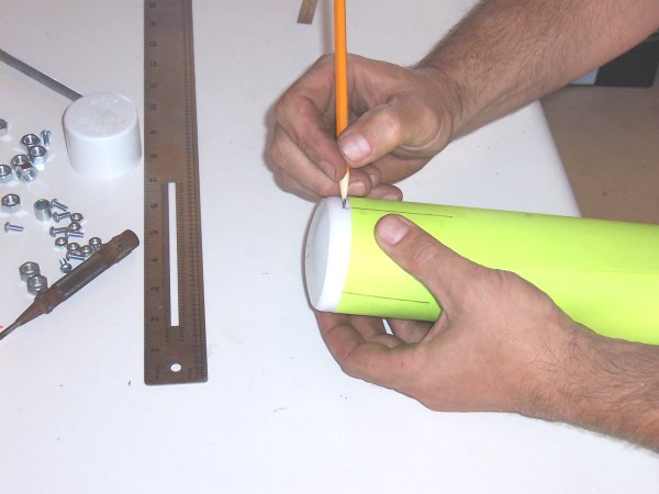 Wrap the paper back around the cap. The lines on the ends should line up. Mark